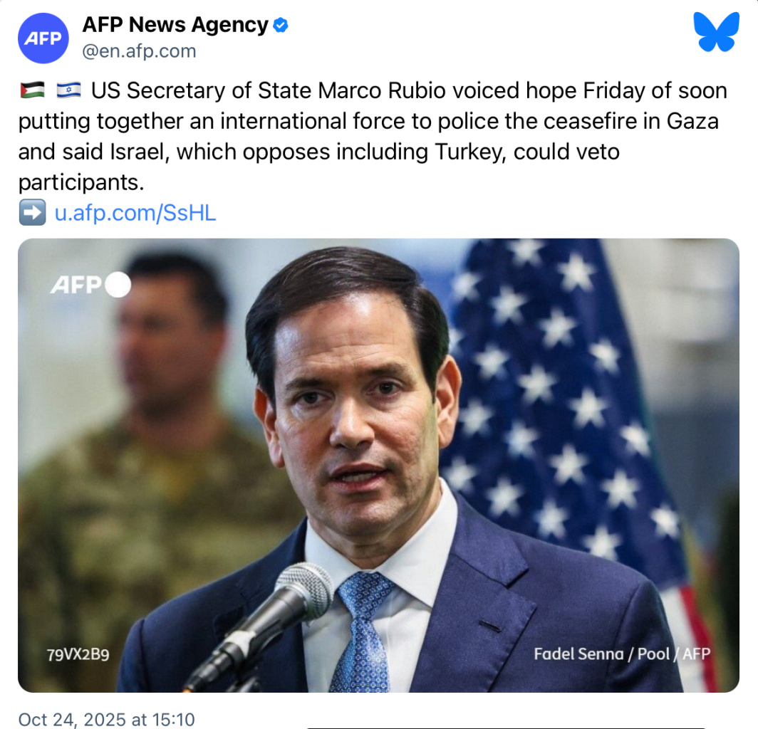 Rubio and all of the other Western leaders ignore the 90,000 plus Palestinians that have been murdered by Israel in the last two years. They disregard the relentless pursuit of genocide and ethnic cleansing by Israel. Instead they invite Israeli politicians to visit them and they visit Israel. They are all like friends of Nazis participating in a new holocaust.