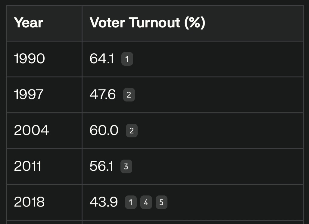 And 9% voted for the redress party, same as FG combined here. Both pretty irrelevant. We also had the loser FG candidate go on the radio after and cry and make a show of herself blaming people here for her not being elected. FG certainly does seem to attract those dose types. Cough.
