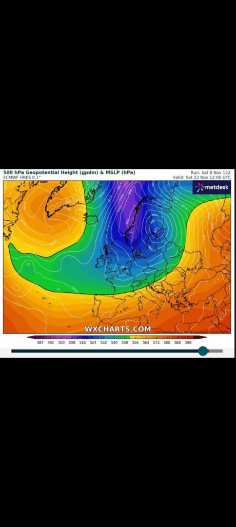 Although later in the run, there is some snow potential, that chart shows cool and wet weather.