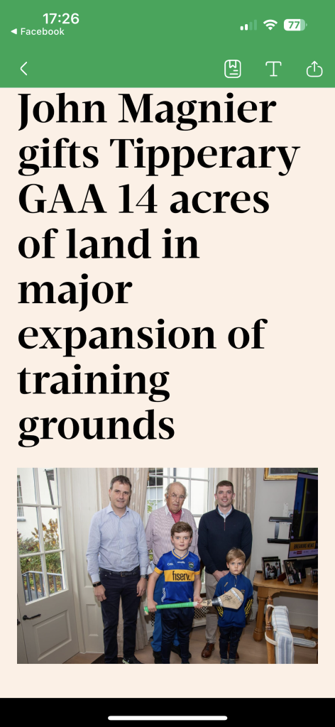 They already had land next to the TUS Thurles Campus where they had plans to build 3 full size pitches (one synthetic). Those plans might be shelved now with the land from Magnier.