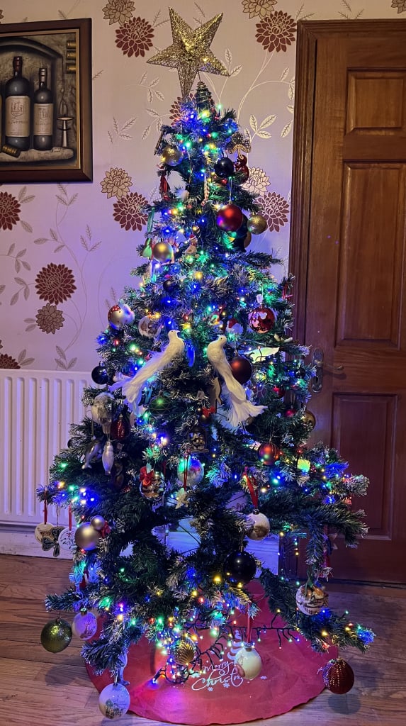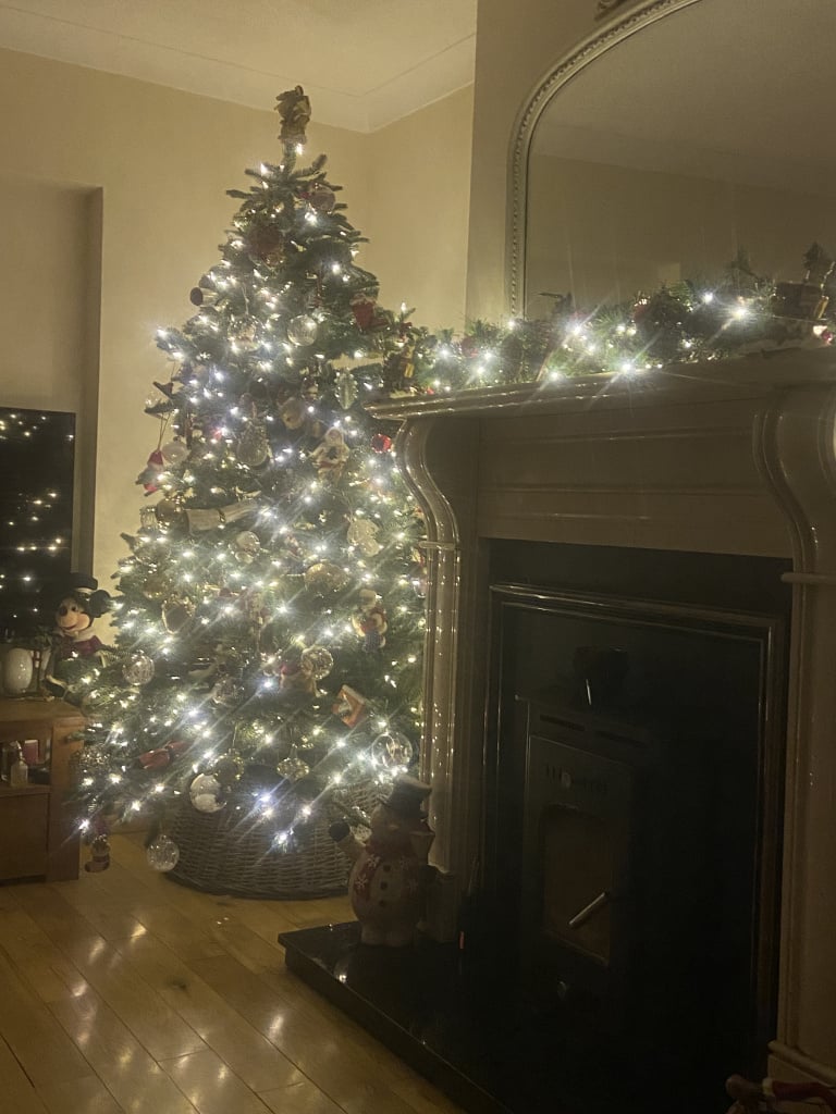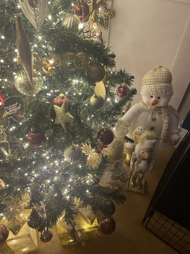 The angel hogtied to the top of the tree is an M&S pudding as is tradition - in 2020 when we moved in there wasn't a tree topper to be found without paying mad money so here we are but he's so cute.