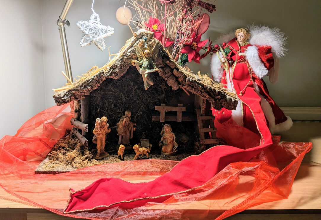 Just got the tree and the crib up. Very traditional .