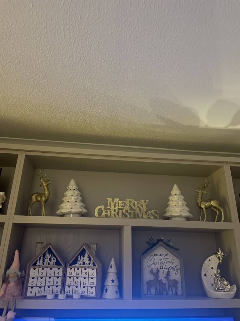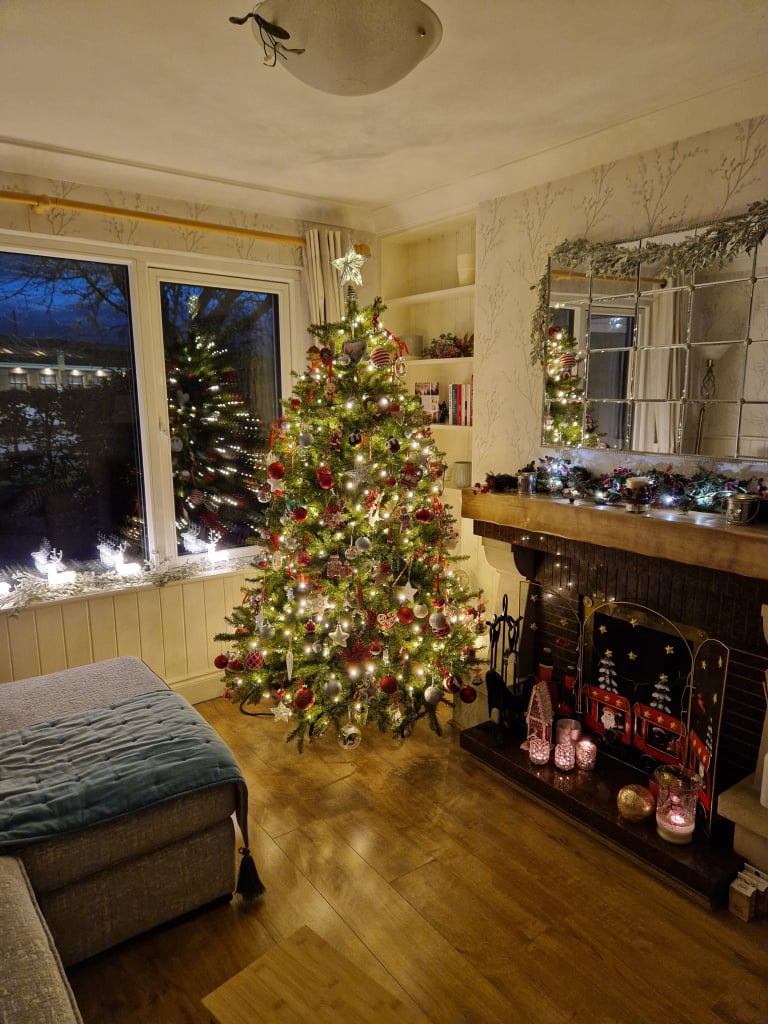 Was going to wait till next weekend but suffering with a bad respiratory infection so needed something to cheer me up. Love the glow of Christmas lights!