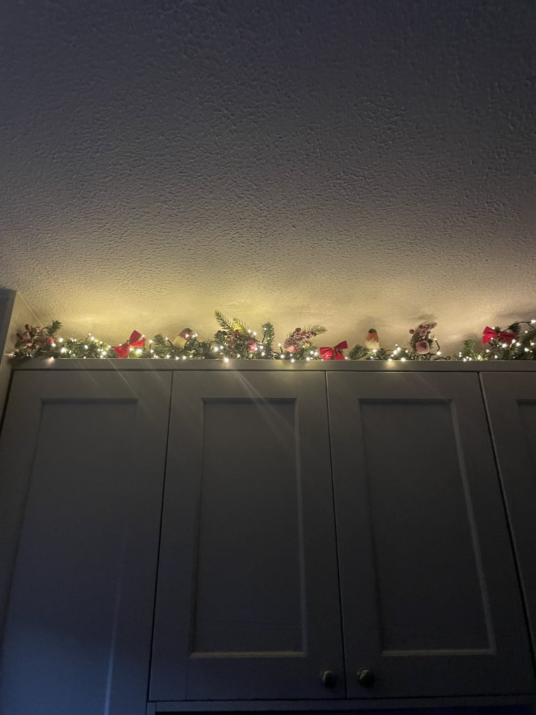 I love the glow off my kitchen garlands