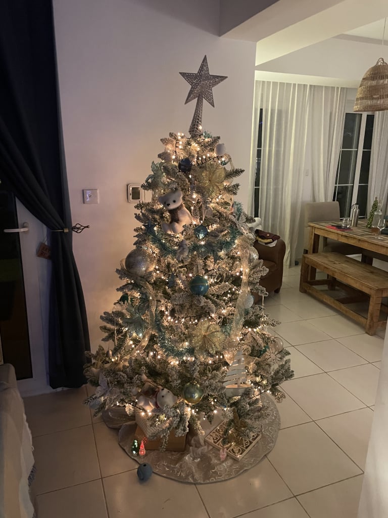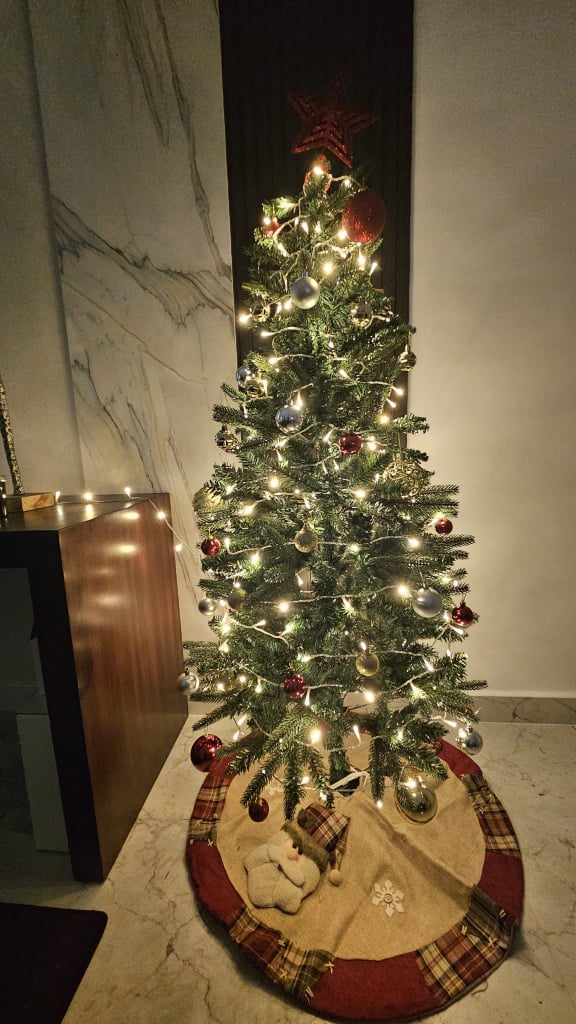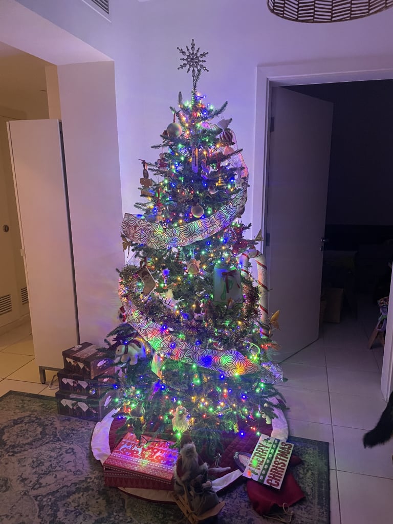 Due to a visa issue I need to stay in a new city this Christmas and compared to the UAE, they don't quite do Christmas as much over here. 😥 I am doing some cat-sitting for my colleague whilst I'm here so I bought a 5ft tree for his house and some lights. It got the cats approval (despite her sad looking eyes. It's her default look)