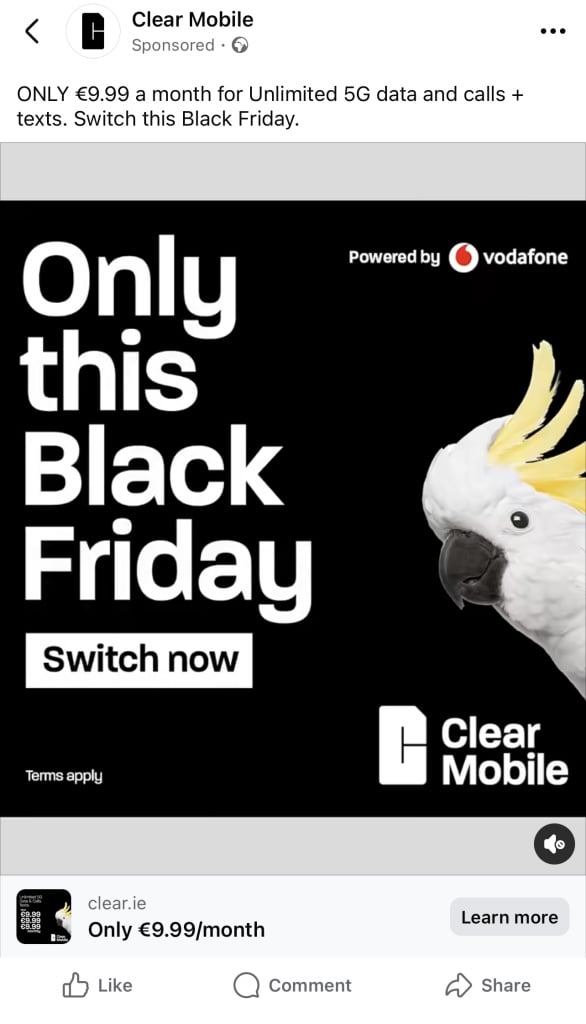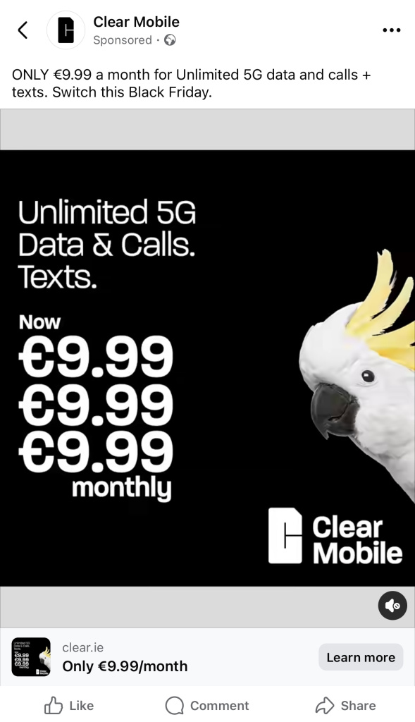 Your Activation Fee will also be discounted to €9.99. All other charges remain as set out in the Clear Mobile €12.99 Price Plan terms.