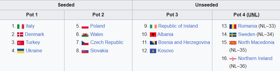Poland, Wales, Czech Republic and Slovakia will be pot 2 and our potential opponents.