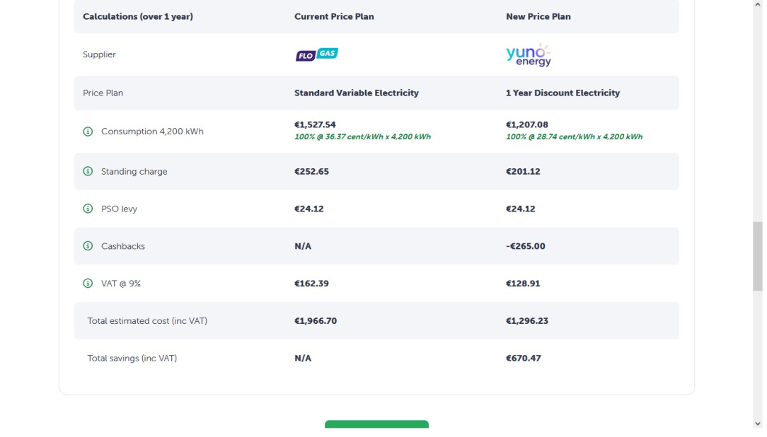 FloGas was close, but I've had issues there, and their standing charge for elec is a bit higher. Gas and elec rates were 0.02409 (standing €275.39) and 0.0741 (standing €151.18).