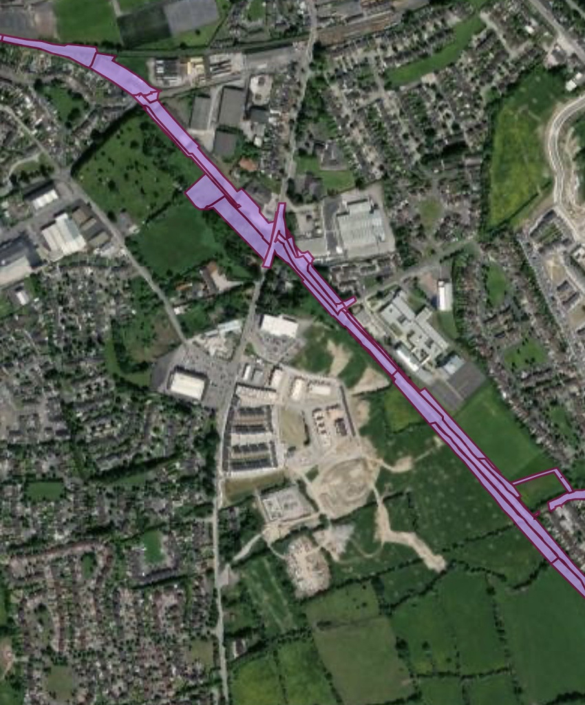 In terms of the station, where is it likely to be here? North of the Trim Road seems like not a large enough space for a station so I suspect it’ll be south of it. It’s not too clear though, the line doesn’t look to be wide enough for two tracks, two platform, a building, and a car park…