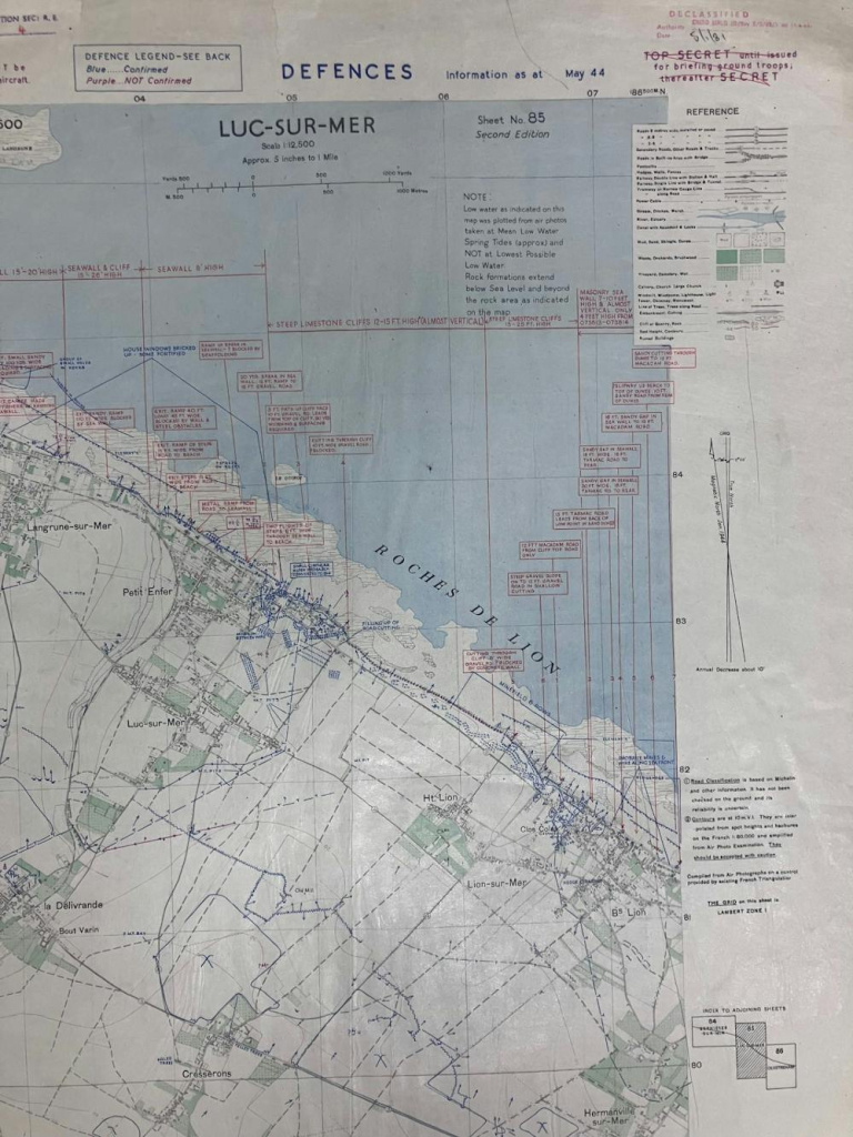 A D-Day planning map showing the eastern half of Sword Beach, where British forces later invaded. France 12,500 Defences Information/British Library Board.
