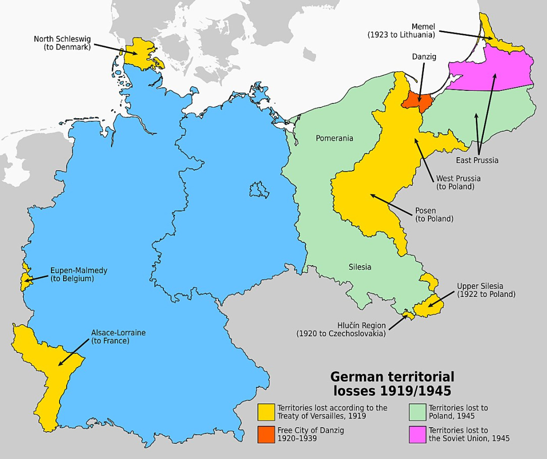 The loss of German territory from 1919 to 1945