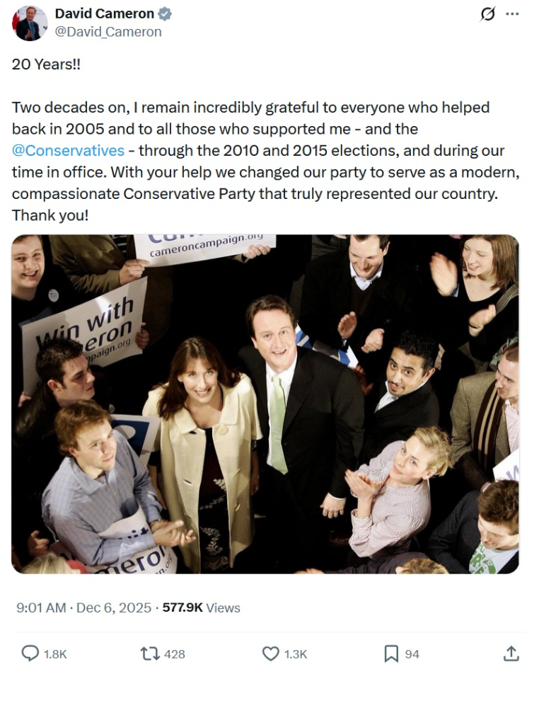 The man who started this whole mess by pandering to the Eurosceptics, undermined the union, instituting austerity cuts linked to 120,000 deaths, holding that abomination of a referendum and then scarpering once it didn't go his way can't read a room.