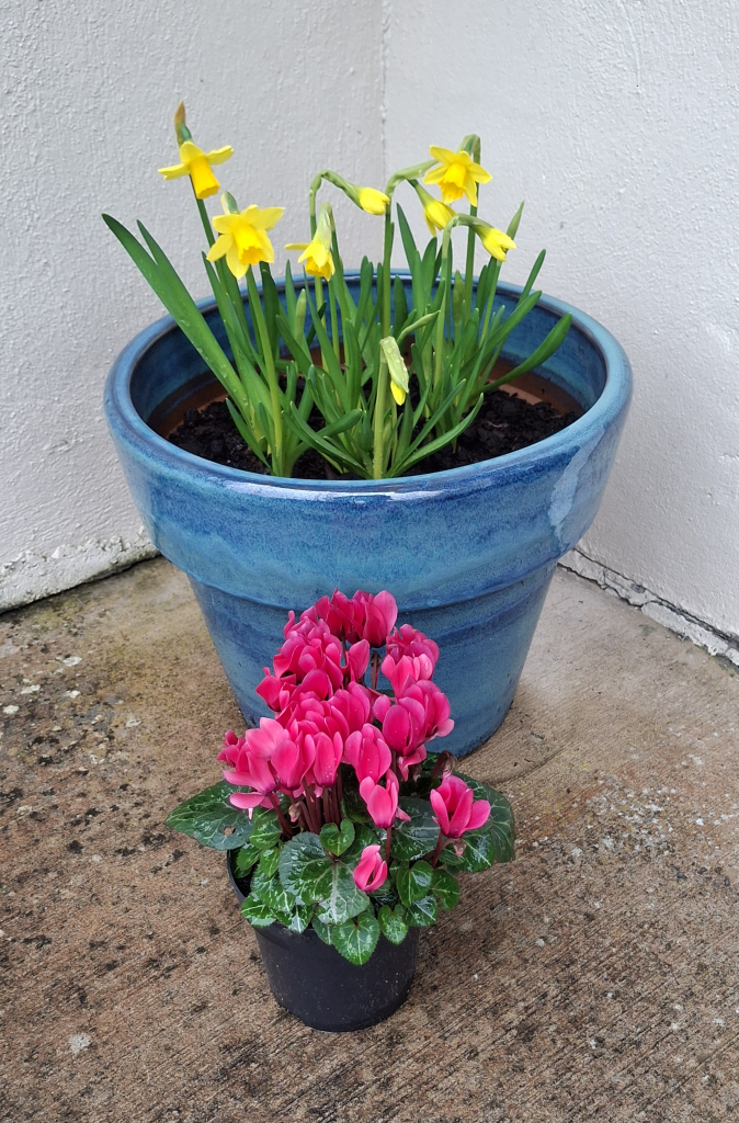 Quite happy with my dwarf daffodils and cyclamen at the front door. My snowdrops are a bit of a loss (growing slowly but no sign of any flowers) so they have been relegated to the back garden until they improve