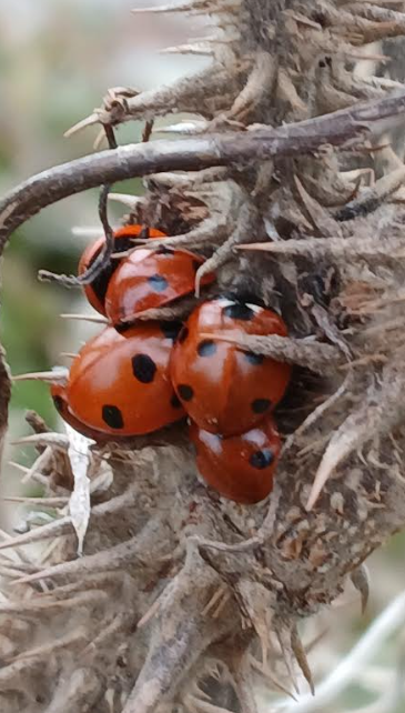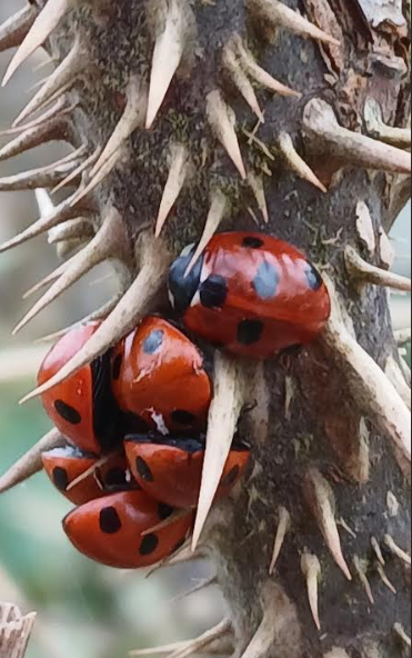 Where do ladybirds go in winter? Some of them form clusters on a very exposed, particularly vicious rosa rugosa in my garden!