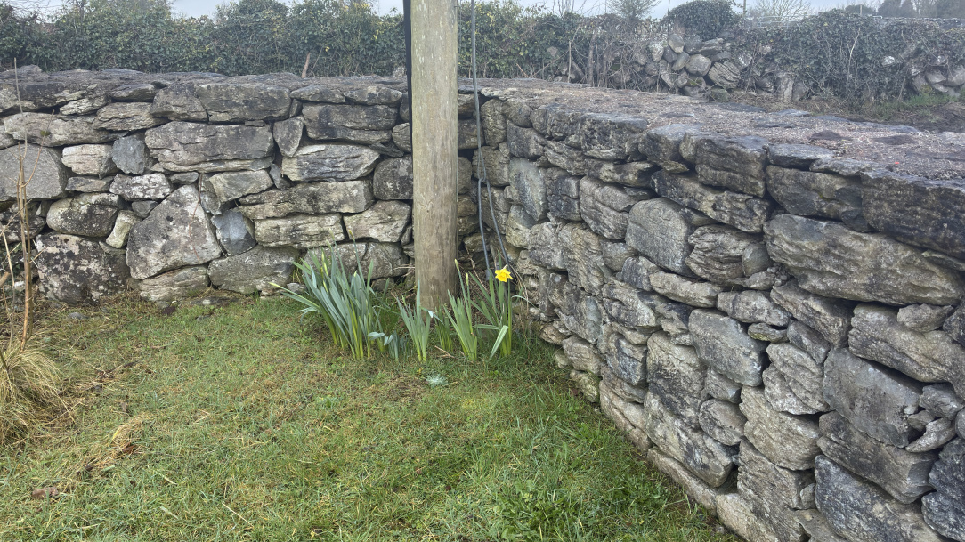 amazing stonemason did that about 5 years ago - it was amazing to see that skill in action. He did about 100 metres in all. Not quite dry stone but you simply cannot see the mortar (no blocks in the middle either).