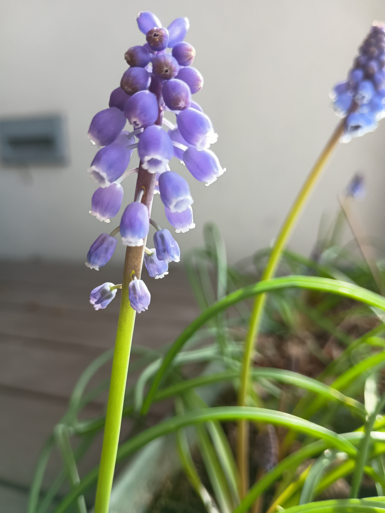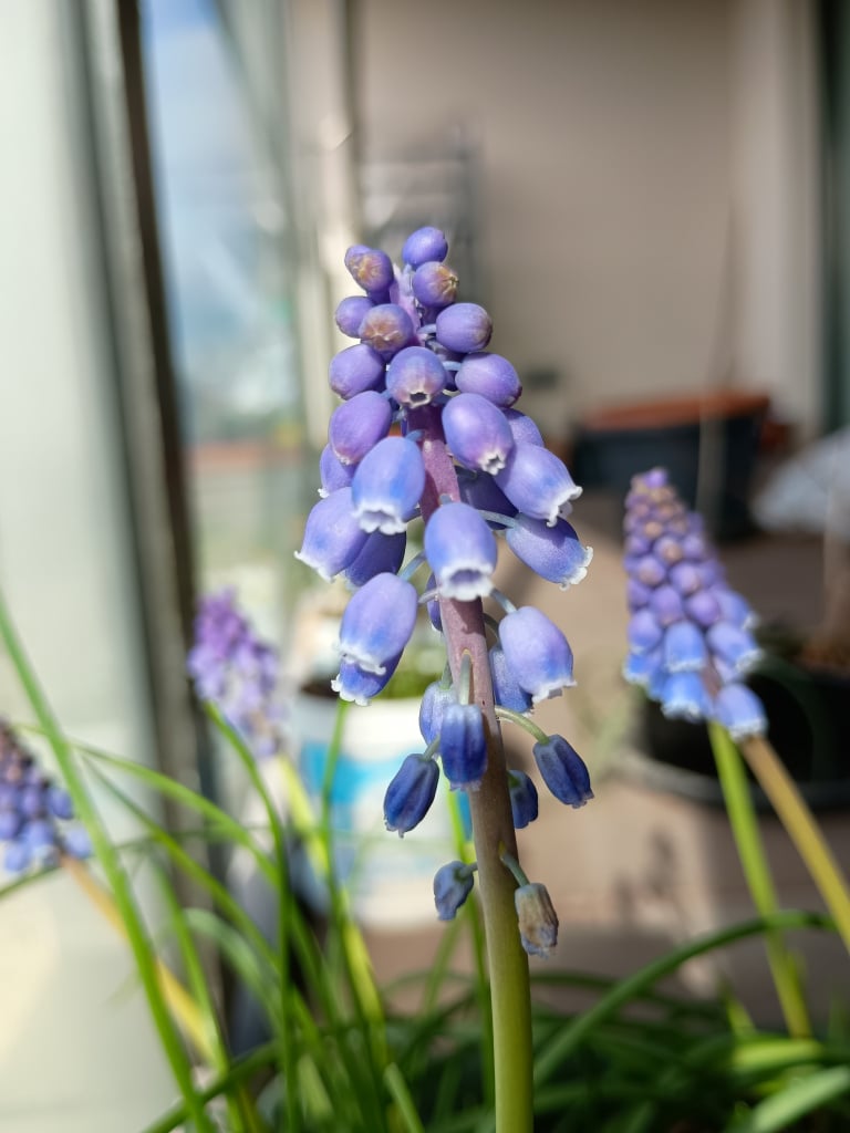 Grape hyacinths are in full bloom right now. Lovely flowers and they grow like weeds. They multiply so quickly. They are forbidden in the vegs patch for this reason.
