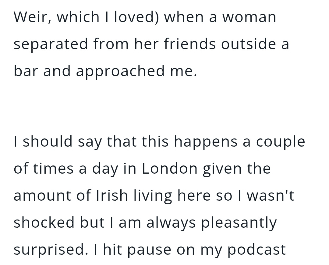 He then talked about filming the new film in Ireland, at the end of this question he says you never know who's going to be the star in on an Irish set it could be the hair and make up person…. silence on the other end of the line.