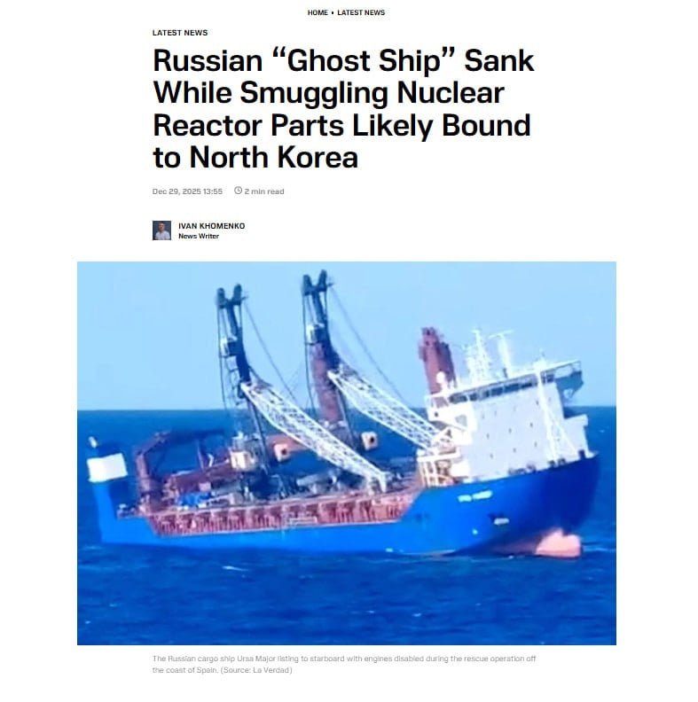 Spanish investigators say the Russian shadow fleet vessel Ursa Major, which sank off Cartagena on Dec. 23, 2024, was carrying secret strategic cargo, two VM-4SG nuclear reactor cores reportedly bound for North Korea. Hull damage showed signs of an external strike consistent with a supercavitating torpedo.
