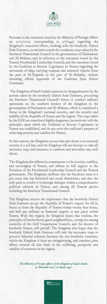UAE and Israel seem to have married each other. Secret meetings, UAE refusal to condemn recognition of Somaliland, attempted seizure of parts of Yemen to eventually facilitate Israeli military bases. The Saudis are now strongly opposing UAE in Yemen. 2026 should reveal whether Israel and the UAE can take effective control of substantial land areas in the Gulf of Aden.