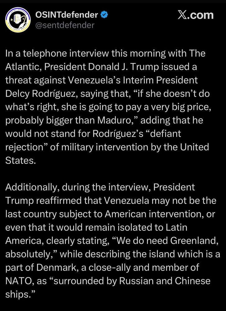 "If she doesn't do what's right, she is going to pay a very big price, probably bigger than Maduro," the US president told The Atlantic in a phone interview this morning according to US time.