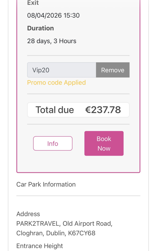 Park2Travel (the old Quickpark at Dublin airport) offers