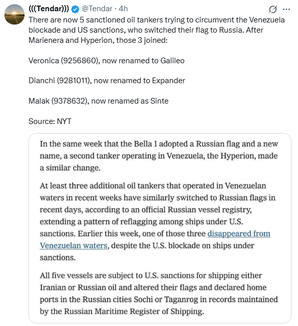 Meanwhile another 4 or 5 ships switched their flags to Russia hoping that'll deter US interference.