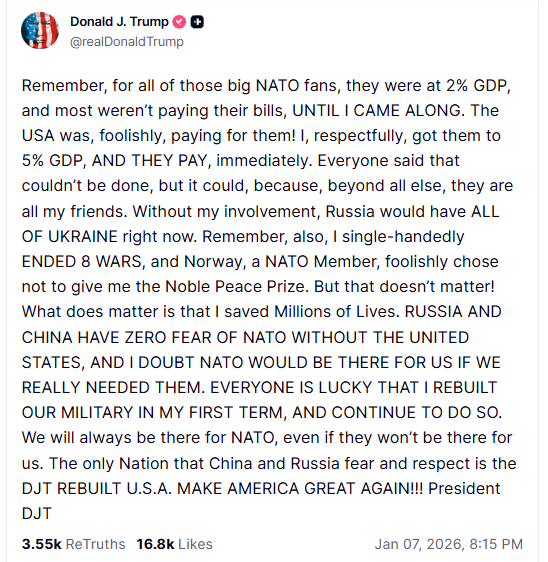 When the U.S. invades/annexes Greenland, NATO is dead and Putin gets what he wants… a 'version' of NATO without the U.S.