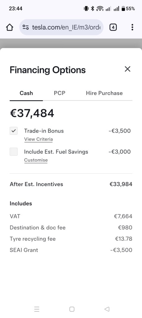 Click the bottom left price on the order screen and it gives the option then to include fuel savings and now also gives the option to include the "Trade in Bonus". 34k for a new M3 is good going