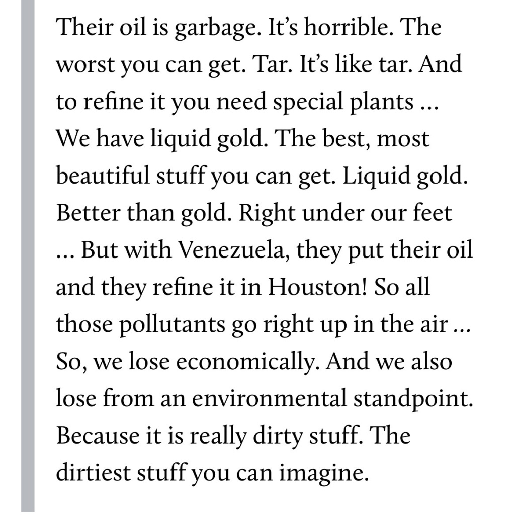 this is what Trump said about Venezuelan oil only a while ago. Now he’s trying to sell it.