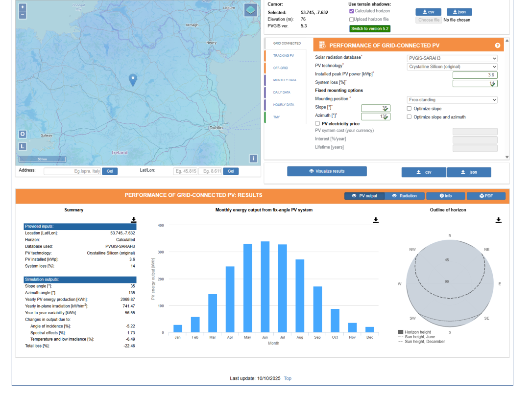 One of the best tools out there is this one from the EC, https://re.jrc.ec.europa.eu/pvg_tools/en/#PVP