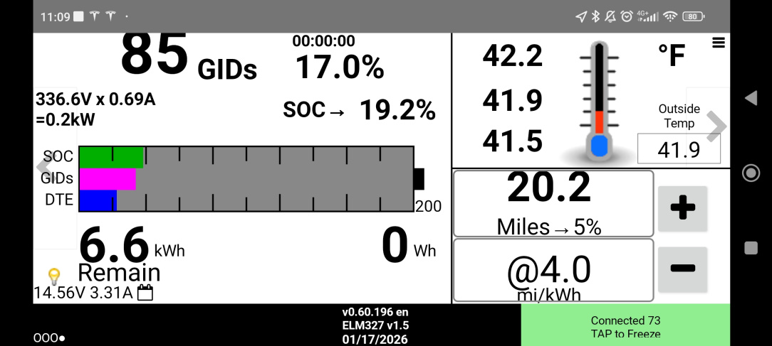 Seen at the bottom. It's the real SOC. It doesn't always exactly match what is on the car dash. Just giving it a mention. The 12V battery also shows there on the bottom left. I use LeafSpy Pro, so the basic version (which isn't available on Android phones) may not have all the details, but I believe it has the ones you see here.