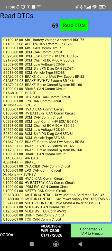 I would always clear DTCs after a quick glance, reboot the car and the re-scan if i'm interested in them, or suspect other issues. Also I recommend holding the phone in landscape when reviewing the cell data. Makes it much easier to read.