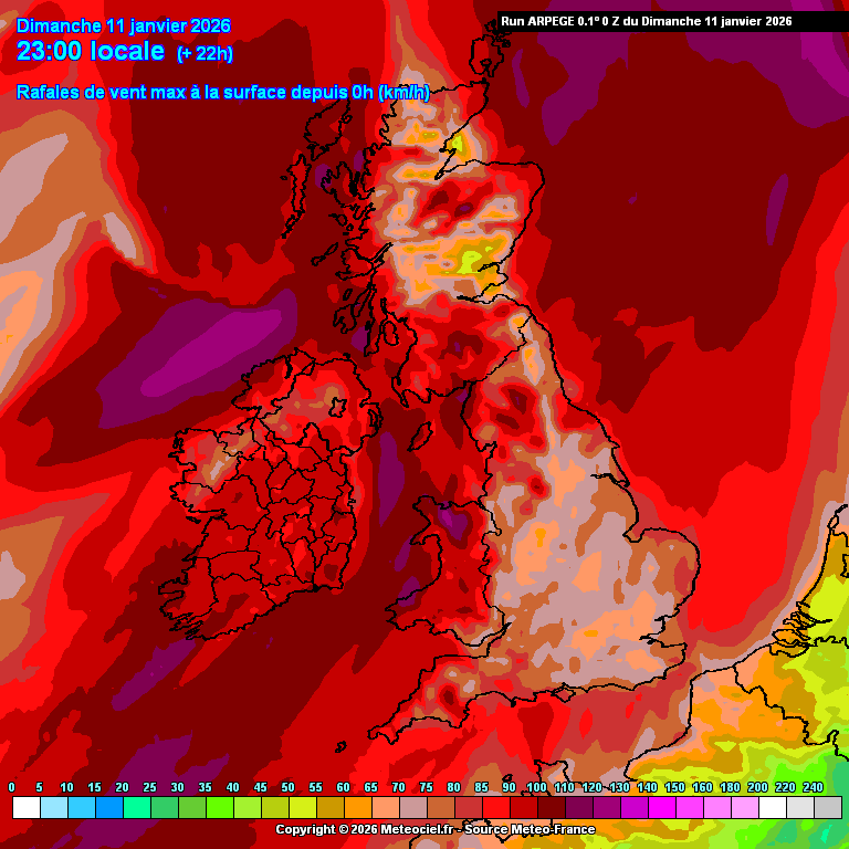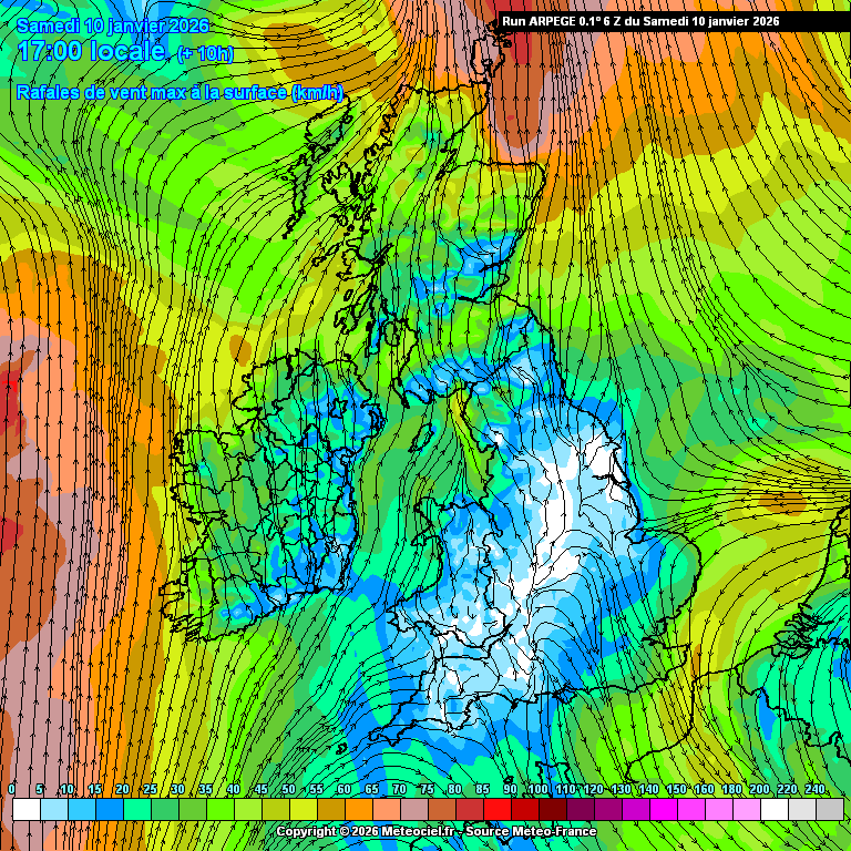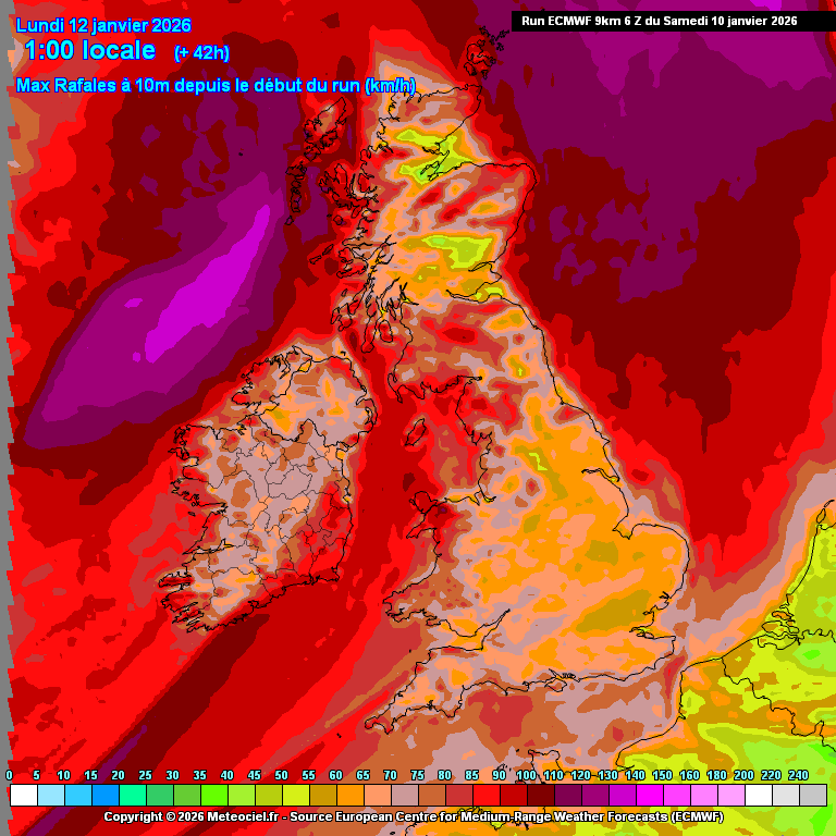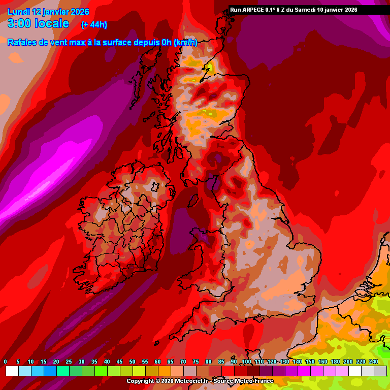 ECM 06Z out and windier in the S and SE like what ARPEGE is showing ( Gusts 80 to 90km/h for a time ) but less windy overland , maybe on average up to 70 km/h, touching 80km/h along W and NW coasts.
