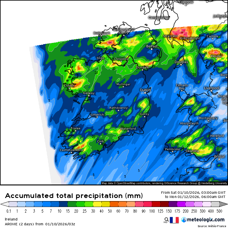 Carrauntoohill looks🥶over the next 10 days. Temps across Ireland will run slightly below average, with many inland and sheltered locations seeing night-time values close to freezing, particularly away from Atlantic coasts. Rainfall will be below normal away from southern areas. Fog a big issue tonight through Saturday night. Temps will be suppressed in many places throughout Saturday as a result.
