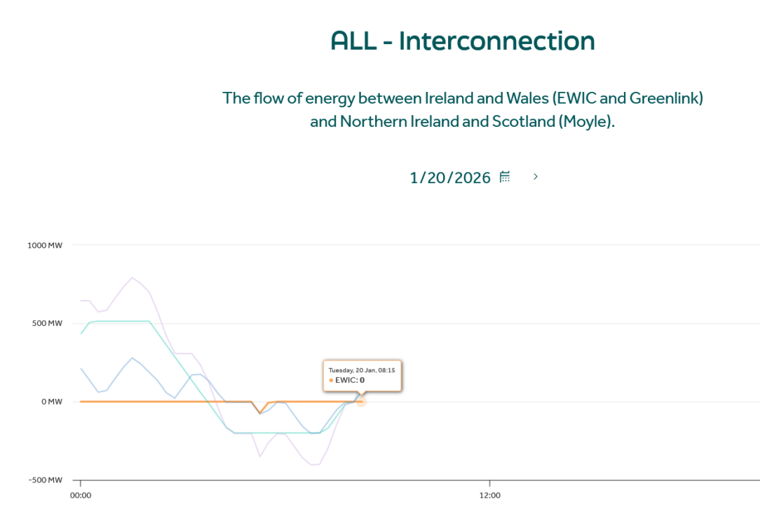 That's not how markets work. Greenlink and all other interconnectors flow based on the price differential in each bidding zone. The SEM is effectively a single bidding zone, so we are either importing or exporting 99% of the time. GB didn't go for zonal pricing so you won't suddenly see exports on Greenlink while Ewic and Moyle import.