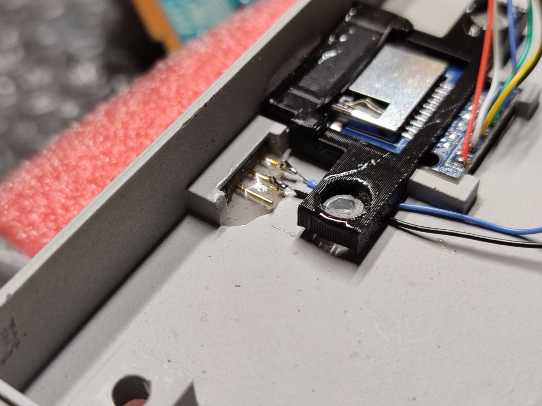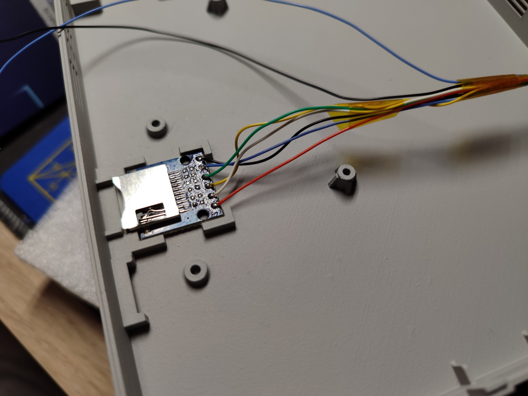 ^^ I print the necessary bracket for the SDHC adapter, and just need to mount it into place. You can also see two additional wires which form a nice little feature….