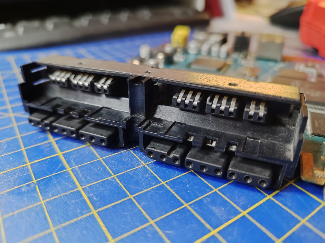 ^^ The necessary wires are soldered onto the MC2 port on one end…