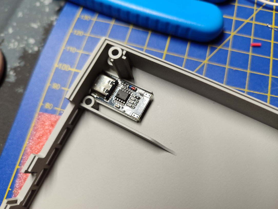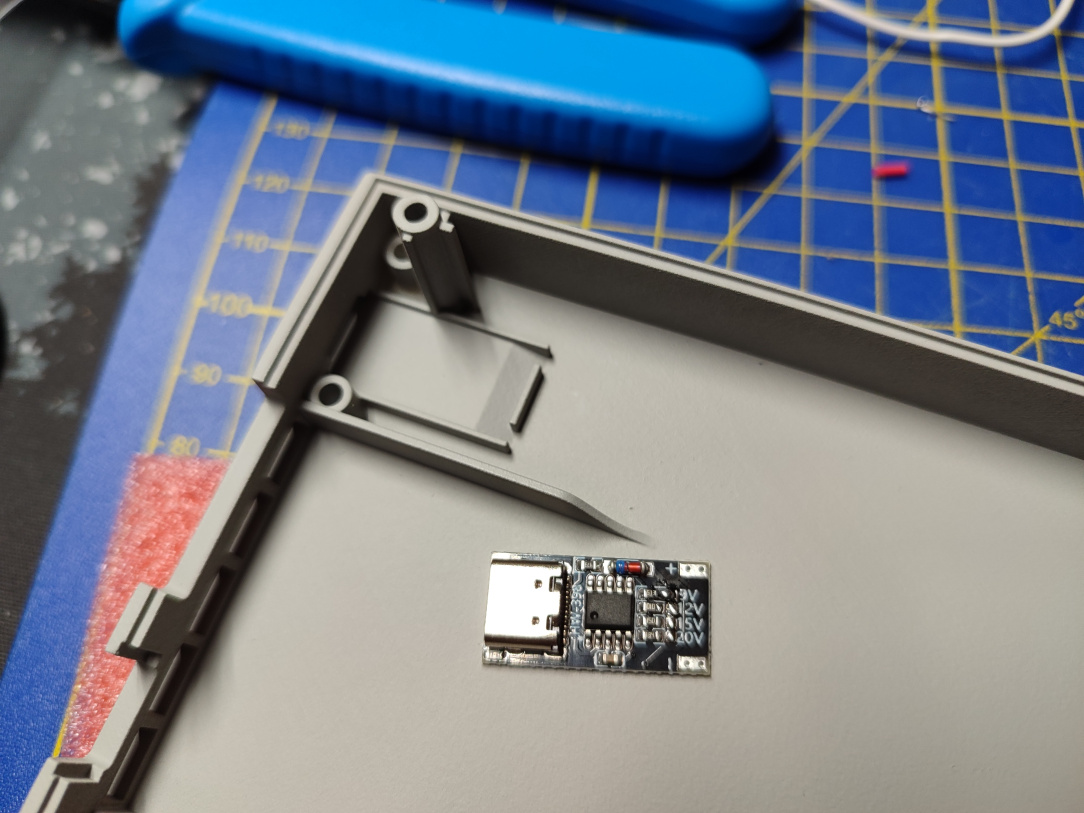 ^^ Now to fit the USB-C PD board into place. The shell once again has the necessary cut outs & supports in place making this a very neat solution.
