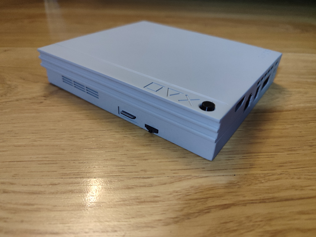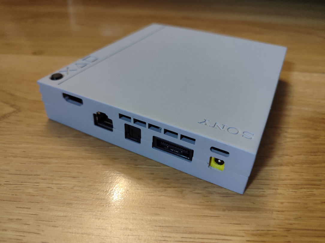 ^^ From left to right, the HDMI output, Ethernet port, SPDIF output, RGB AV port, USB-C PD power input, and I've re-added the the original power jack too (to give it full original functionality on the back panel too.) I did have to trim the DC port hole myself, it's not factory, but is pretty neat to the eye.