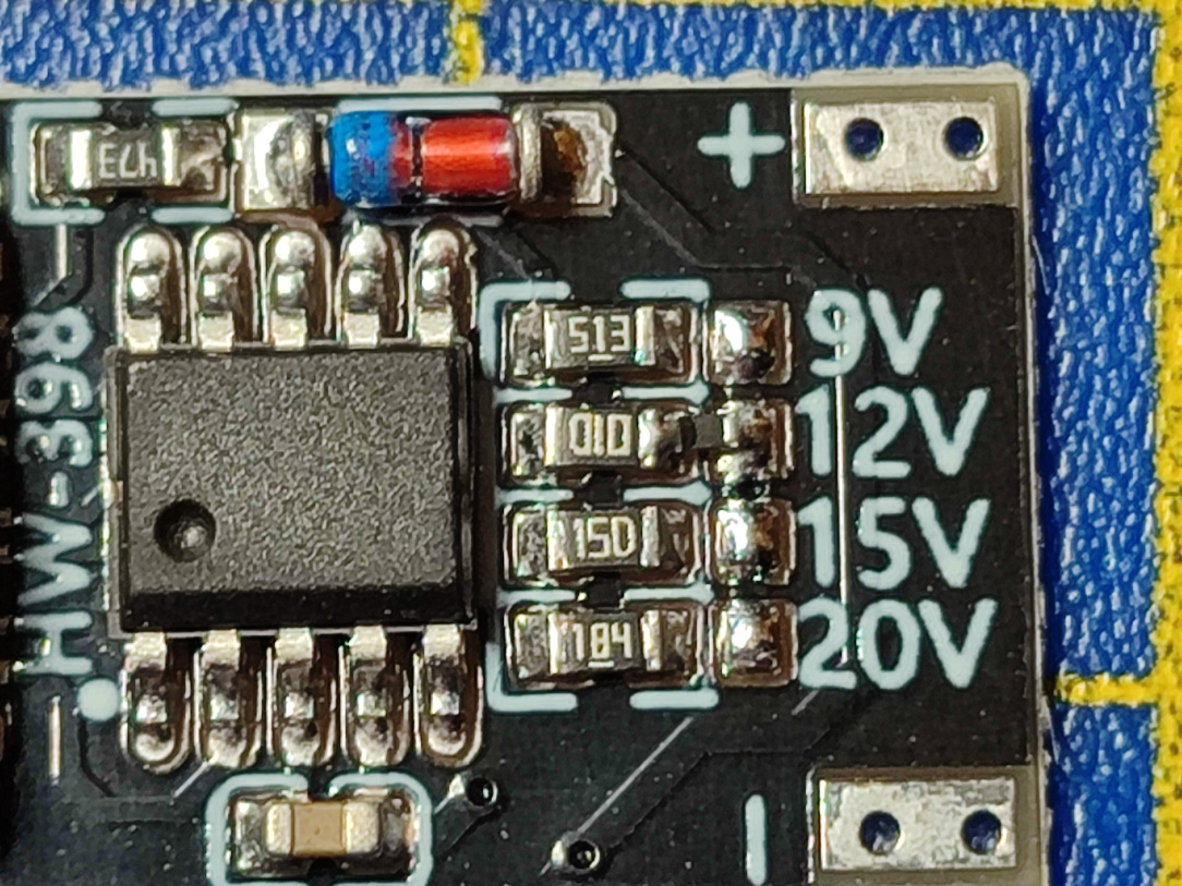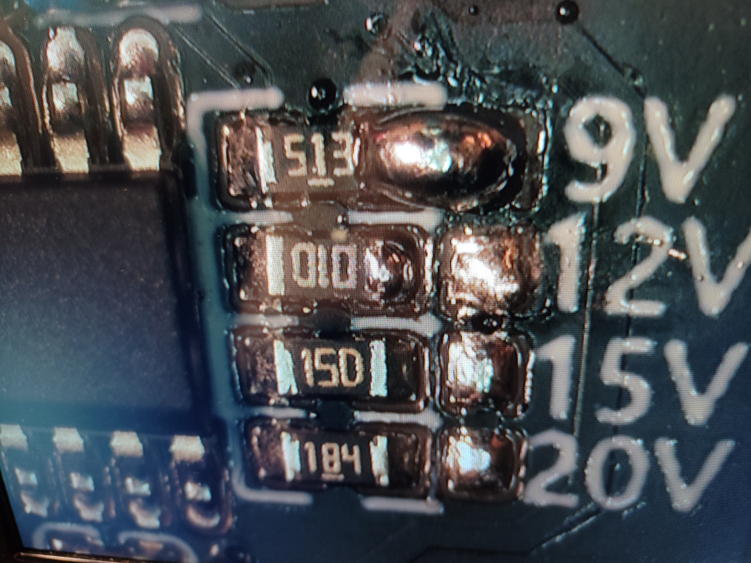 ^^ You can see it's configured for 12v here, which is too high for the PS2. We need to remove the 0ohm resistor, and instead configure it for 9v bu using a solder blob/0ohm resistor.