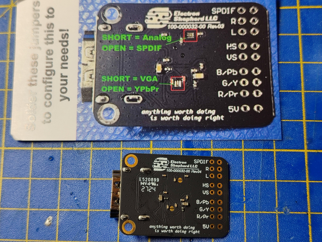 ^^ We first need to configure the board for YPbPr by soldering a jumper pad.
