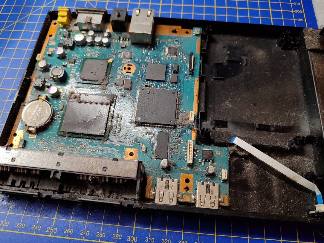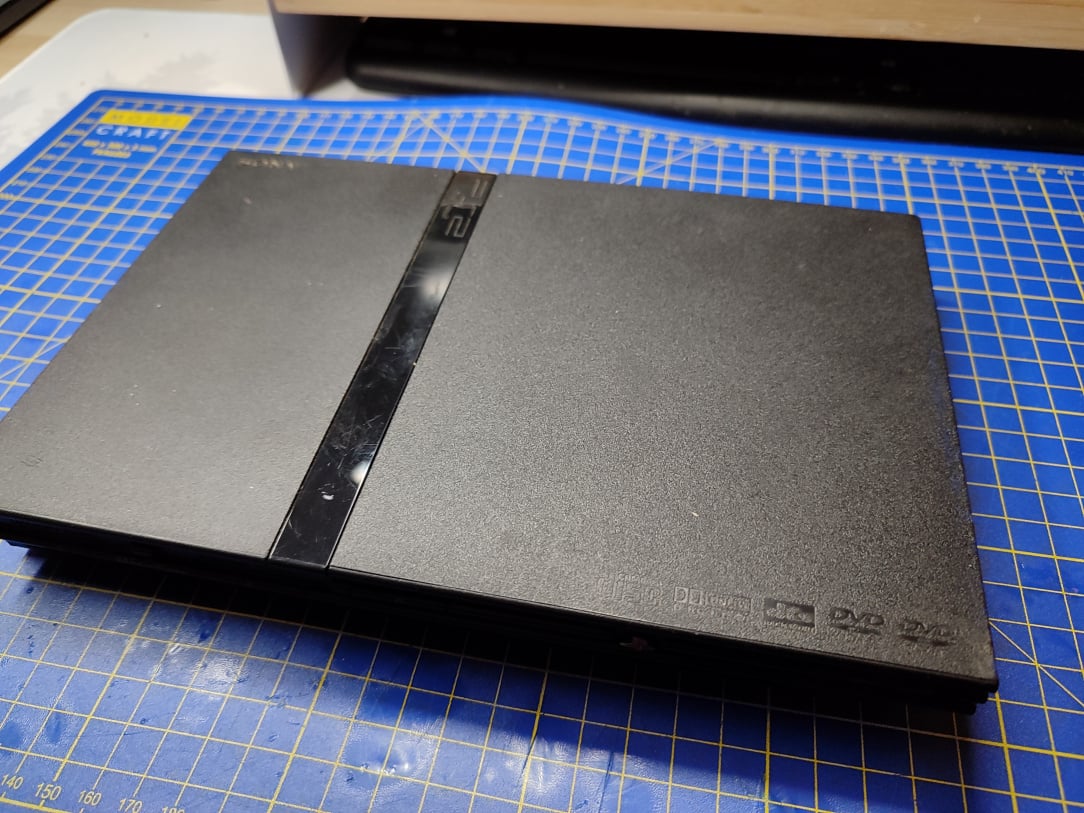 ^^ We begin with a bog standard, partially working PS2 Slim. The DVD laser is no longer reading discs, so this console is a perfect candidate for the mod.