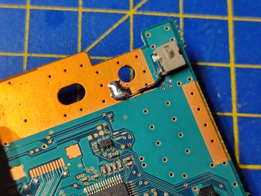 ^^ Rather than screws here, I rely on downward pressure from the console innards to secure the SDHC board, along with a few drops of epoxy for it and the switch (the switch was looser than I'd like and wasn't a great pressure fit, so the epoxy has locked it in place nicely.)