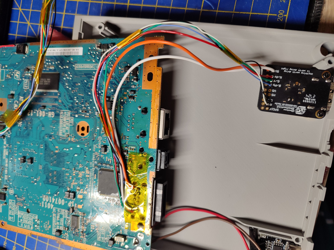 ^^ Enter, the ElectronAnalog. It's an internal HDMI adapter for the PS2 (well, any console that outputs the necessary signals really.) It's not a true Digital-Digital HDMI solution, as we need to tap the analogue signals from the AV port, but for the price, and convenience, it's a very nice solution.