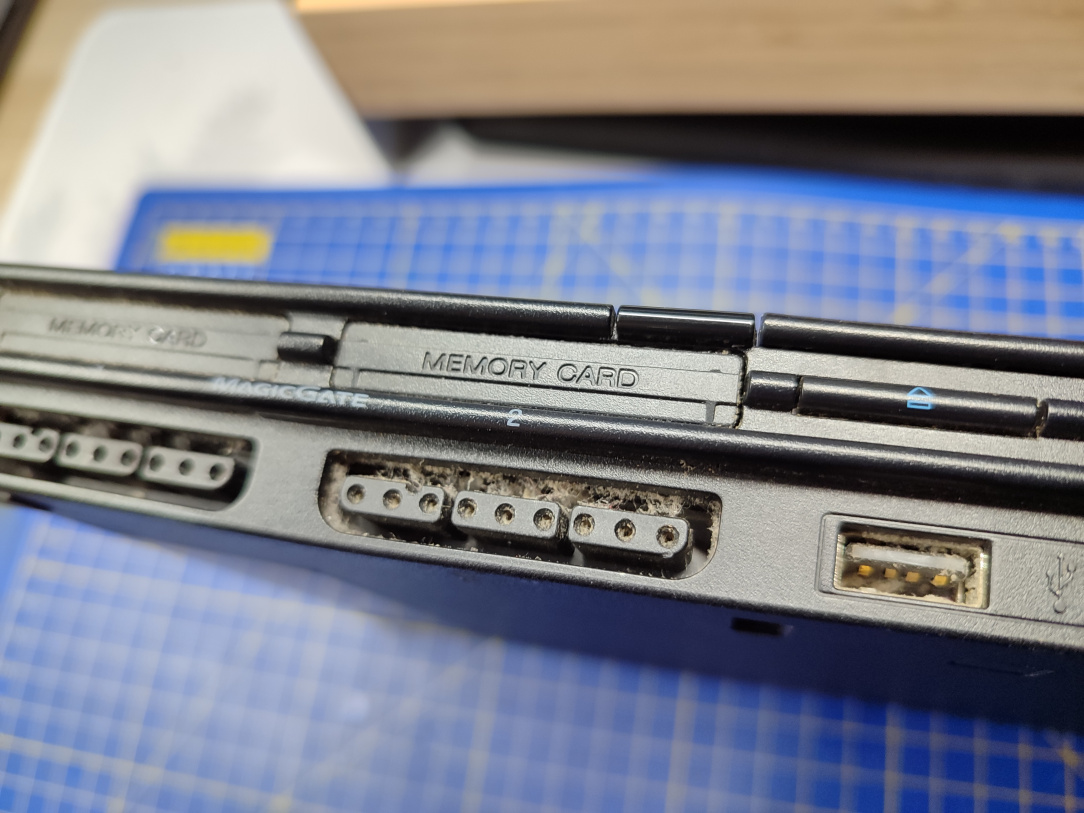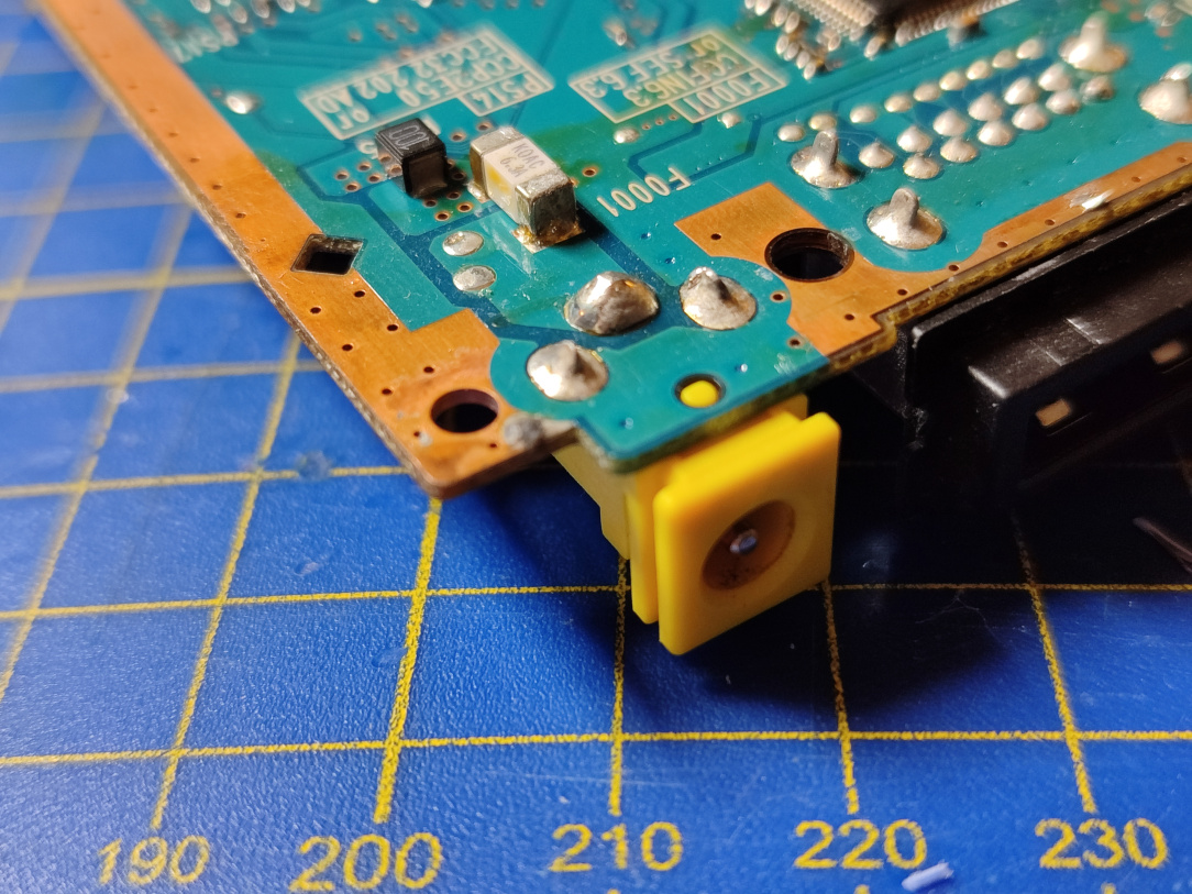 ^^ The next mod is to remove the DC port, and enable to console to be powered and used by USB-C PD. The PS2 Slim adapters don't always come with these machines, so it's handy to be able to use it without needing to buy one (which can often cost more than the console itself!)