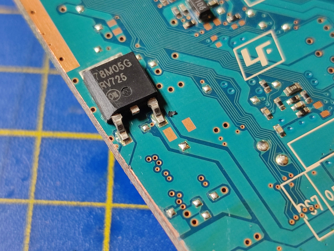 ^^ I remove the capacitor beside the voltage regulator (for reasons you'll see soon.)