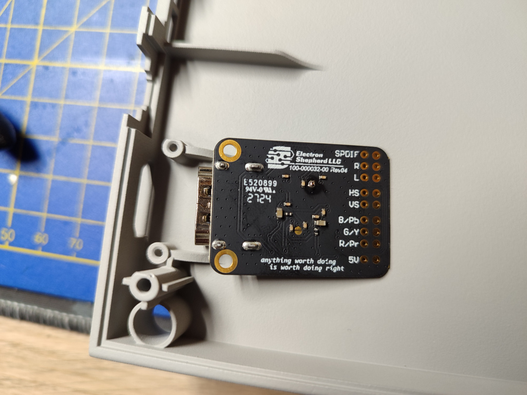 ^^ Our first look at the new shell. I'll hide as much of it as I can while we're still building it. It has x2 screw posts for the EA board, and a pre-cut HDMI slot for output.