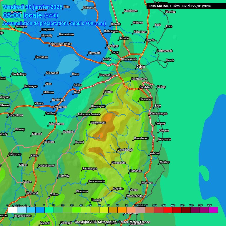 Blustery and on/off rain in my part of D14. River levels aren't looking good around the Dodder, still quite volatile, and since the river is quick rise/quick fall, it doesn't help. Some of my neighbours have started preparing incase it goes south again, WeatherEire's post on twitter shows another dumping of 30-35MM for the Rathfarnham area of SCD tonight for those local to me.