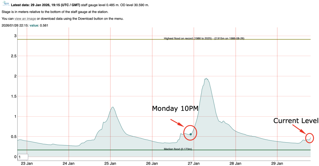 Dodder Level Taken Monday (26/1/26) @10:30PM
