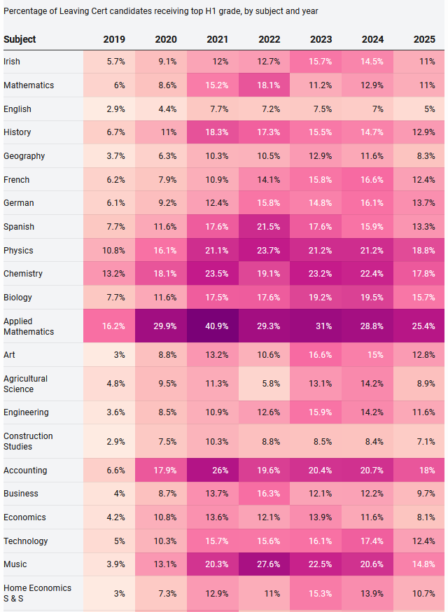 The same weigh its most hard too get a H1 hear in English in the Leeving Sert dan in anny udder subgect. Not sure how they arrived at Physics in that map tbh.